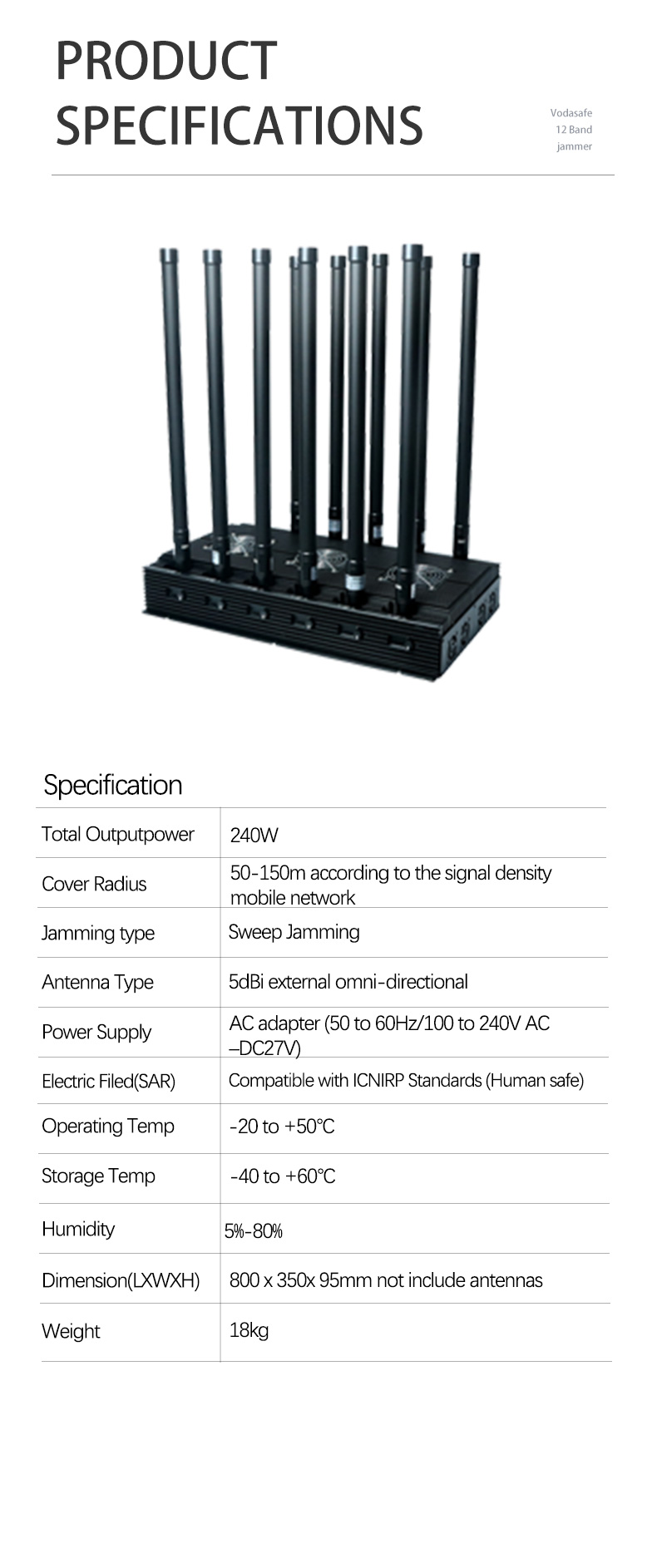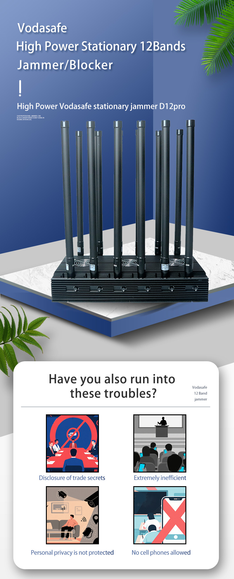 Постоянный Джаммер/Блокер 12-Бэнд с Высокой Мощностью Vodasafe D12Pro
